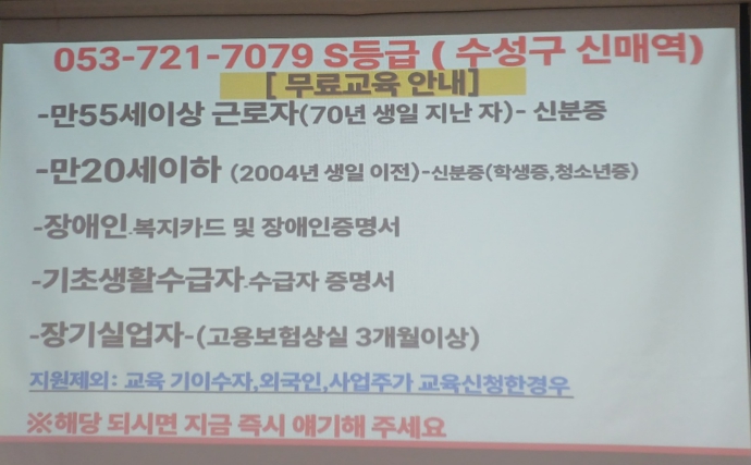 대구경북교육장 기준이지만 타지역 예산있으면 조건 동일 합니다.